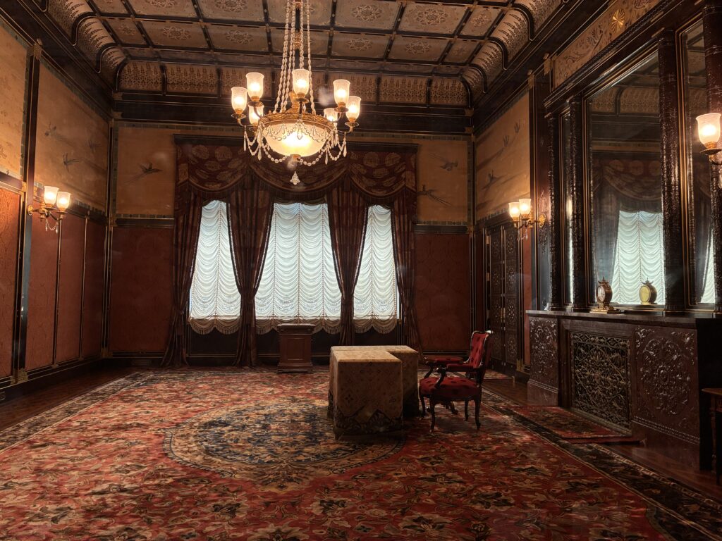 御休室正對著中央大道,直達國會正門,天皇從正門進來後,經過中央大廳後,上樓梯就能直達御休所
